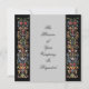 Vintage art from an antique illuminated manuscript with colorful flowers and scrolling leaves on a black and gray.