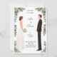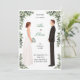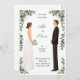 Featuring a beautifully hand-drawn bride and groom surrounded by soft green foliage, this design blends modern minimalism with natural romance.