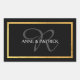 An elegant and nice monogram design on black background with a faux gold border, personalized with your family initial in a script font style, and first names... for you classy wedding favors and packaging