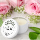 Make a memorable impact on your wedding guests with this custom soy wax candle, showcasing a circular design embellished with elegant olive branches and your initials. Drawing inspiration from the Mediterranean's allure, where olive trees represent peace, love, and abundance, this piece brings sophistication to your event. Personalize the lid with your initials and select from an array of fonts to create a one-of-a-kind keepsake.