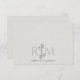 An elegant botanical monogram featuring a couple's first name initials in a soft ghosted gray hue with a delicate botanical foliage accent between them, and your names underneath. A modern minimalist, yet classic elevated style for your couple's personal stationery. The background has a faux linen effect.