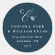 Elegant initials navy blue wedding return address classic round sticker
