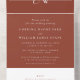 With an elegant ampersand uniting two initials, this simple design is the perfect wedding invitation for a classic event. The color scheme is achic and sophisticated terracotta rust shade. There is plenty of room for custom text and the RSVP card detaches to be sent as a postcard. Set the tone for a timeless wedding event with this beautiful invitation!