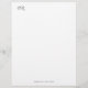 Personal stationery featuring your custom initials in a distinctive font at the header creates a striking and personalized touch. The initials serve as a bold statement piece, drawing attention to your unique style. Along the bottom of the sheet, your address, phone number, and email are neatly aligned in a clean, understated font, ensuring easy readability without overshadowing the elegant header. This layout balances sophistication and practicality, perfect for both personal and professional correspondence.
