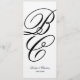 An elegant wedding menu features your starter courses, entrees and desserts in elegant lettering, Your personalized name and wedding date on the back along with your initials in large elegant script. Coordinates with our elegant initials wedding collection. Use the template fields to add your menu information, and then click "Customize" to reposition elements if needed.