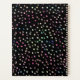 A magical girly Disco Party holographic confetti iridescent dots Black artwork, perfect for special events, party decorations, and unique celebrations. Featuring a collection of shimmering faux glitter sparkles, holographic polka dots in pink, purple, mint, green, blue, teal, yellow pastel colors, metallic gradient effects brush dots pattern, on a black background.