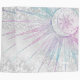 This Beautiful, Mystical, Enchanted Sun and crescent Moon Mandala Universe theme Aesthetic design is perfect for home decor, everyday wear, or special events decorations. A Magical, whimsical holographic glittery sun and moon mandala artwork, featuring flowers and leaves doodles, stars, dots, diamonds, circles, triangles geometric shapes, a mermaid scale pattern, iridescent sun, moon mandala faux silver glitter design.