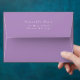 This elegant wedding envelope is perfect for spring and summer events. The liner features watercolor irises in shades of lilac and periwinkle blue. Subtle touches of gold add a glistening, magical element.