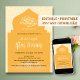 Celebrate the blessings of Ramadan with this beautiful Iftar party invitation. Featuring a classic golden mosque silhouette and a sophisticated geometric pattern background, this design is perfect for family gatherings, community Iftar dinners, or Eid celebrations. Easily customize the text to include your event details.