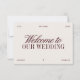 Greet your guests in style with this elegant ivory and burgundy wedding welcome card. Featuring a clean ivory background paired with refined serif and flowing script typography in a deep wine-red hue, this design creates a timeless and sophisticated first impression. Fully customizable — personalize with your wedding date, location, and names to make it uniquely yours. Coordinates beautifully with the full “Sabrina” wedding stationery suite for a cohesive and polished look.