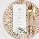 Elevate your wedding reception with our Ivory Floral Blooms Wedding Menu. This sophisticated design features delicate ivory blooms intertwined with soft green foliage, creating a timeless and romantic ambiance for your special day.