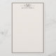 Create your own personalized stationery paper with elegant three letter monogram initials and name with simple border design in black and ivory color.