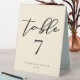This sleek ivory wedding table number table tent sign features beautiful minimalist black typography on the cream color for your formal event. Traditional colors combined with the current trend of simple script on neutral color decor.