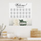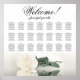 Enhance the esthetic appeal of your wedding reception with this exquisite 21 table seating chart. The chart accommodates up to 210 guests and follows a traditional layout of 10 seats per table. The design exudes a romantic and stunning aura, showcasing a solitary ivory, white, or cream colored rose resting sideways and mirrored in a water body. The elegant calligraphic title reads "Welcome! Please find your" with ample space at the bottom for the couple's names and wedding date. This seating chart provides a delightful welcome to your guests while facilitating their seating arrangements.