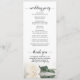 This beautiful wedding program features an elegant design with a single long stemmed ivory, white, or cream colored rose lying on its side reflecting in water. The titles are written in fancy script calligraphy, and there is space for your ceremony and wedding party details, as well as a short thank you for your guests. Wonderful way to welcome your friends and family to your wedding celebration.