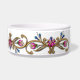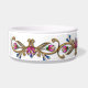 Elegant dog food dish, with pretty graphics of a gold tone and enamel looking floral jewel band, around the dish. Very elegant ornate looking dish that will make your canine friend feel like royalty. Makes a great gift idea.