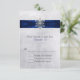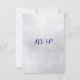 Chic winter wedding response RSVP card done in a light gray mottled background. Graphics of a rich dark blue satin looking ribbon with white lace edges, runs across the top of the card and is decorated, in the middle, with a silver tone and diamond looking snowflake jewel. Personalize the black and blue colored text to suit your needs. Chose from many different card stock options for the look you like best. Matching products available.