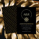 A sophisticated gold foil wedding invitation with floral elements and initials set against a black backdrop. This contemporary invitation showcases your initials in a graceful font within a sculptural frame reminiscent of a wire choker, complete with a flower accent at one end. On the reverse side, a diagonal pattern of the couple's names in gold on black adds a touch of elegance.