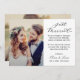 Announce your recent wedding or elopement to family and friends! This elegant wedding announcement card design features a vertical photo of the new husband and wife on the front with simple text that can be personalized with your marriage details and your new married Mr. and Mrs. last name. The back of the card includes a second wedding photo in a horizontal format with white modern "Just Married" script overlay and a monogram of your names and marriage date that can be personalized.