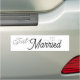 Just Married—fun car magnet. Elegant script font with a cute heart illustration. Simple and sweet black lettering. Order one for all sides of your car and let people know you just got married!