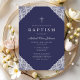Elegant Lace Navy Blue Baby Boy Baptism Invitation