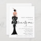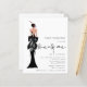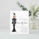 Elegant Lady Trendy Script 21st Birthday Party. A budget price SMALLER 4.5” x 5.6” alternative. Available in a SEMI GLOSS 110 lb CARD STOCK which is the default option (recommended for invitations, similar to the thickness of a postcard), OR a SATIN FINISH 80 lb THINNER PAPER STOCK (ideal for enclosures). An illustration of the back view of a glamorous lady in black and Twenty one is in a funky set handwriting style script. Easily personalise the rest of the text to your own details.