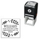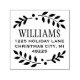 This elegant self-inking rubber stamp features your family name in bold serif typography framed by delicate laurel branches, with your return address in clean uppercase below. Designed to coordinate with holiday cards and year-round family correspondence for a timeless botanical look. A classic keepsake for families, new homeowners, and realtor closing gifts.