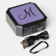 Elegant lavender and black script monogram bluetooth speaker. Note: Depending upon the shape of your monogram, you may want to manually center.