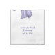 Pure cotton cloth napkins done in white, with graphics of an elegant lavender satin looking ribbon and bow and lavender custom text, on one side of the napkin. Personalize the couple's names and wedding date. Great for your wedding reception, and later for every day use for the newly weds.