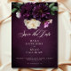 Step into a realm of exquisite elegance with our floral dark and moody wedding save the date photo card. Designed to captivate the senses, this invitation boasts a striking burgundy background adorned with a breathtaking burst of florals in deep burgundy, lavender, lilac, creamy hues, complemented by lush dark green foliage. The creamy elegant script text delicately adds a touch of romance to the overall allure. Embrace the opulence of the rich tones and set the tone for your special day with this stunning design, sure to leave a lasting impression on your guests. Created by Simply Farmhouse Press.