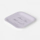 This elegant wedding plate features a minimalist design with a soft lavender background, creating a serene and sophisticated atmosphere. The layout is clean and balanced, showcasing the names in stylish cursive script connected by a simple sans-serif "and," while the date is subtly placed below. The typography combines elegance with modern calligraphy, enhancing the romantic and timeless feel of the design. Perfect for formal celebrations, this plate adds a touch of grace to any wedding setting.