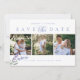 Elegant and rustic watercolor lavender flower with 3 photo collage in horizontal format, typography in dusty blue save the date card with QR code.