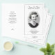 This elegant lds funeral program is beautifully designed with an oval fade vignette on the photo. The program includes special features to add a listing for family and positerity. This program requires folding.