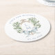 Elegant Leaf Crest w/ Bow | Monogram Wedding Round Paper Coaster