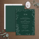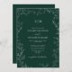 Elegant Leaf Emerald Green Monogram Wedding Invitation