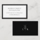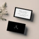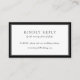 Elegant black and white simple RSVP wedding website card with leaf monogram on the back.