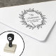 Add a touch of classic elegance to your correspondence with this personalized return address stamp. The delicate leaf wreath design and script font create a sophisticated and understated look.