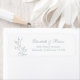 Elegant Leafy Branch Dusty Blue Script Wedding Return Address Label