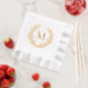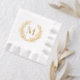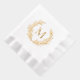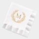 Elegant personalized foil napkins feature a leafy botanical crest design with two intersecting laurel branches. Personalize the classic serif monogram letter with your last name initial.