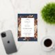 This elegant and modern wedding invitation features a beautiful frame of hand-painted boho watercolor burnt orange and terracotta leaves, cream and beige dahlias, and beautiful rust-colored roses on a navy blue background printed in real gold foil. Find matching items in the Navy Blue Autumn Romance Collection.