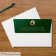 Complete your legal mailings with our Elegant Legal Envelope. Ideal for law firms and legal professionals, this envelope features a white front with a green leather print background on the back flap. It showcases a brushed gold legal-themed logo emblem, followed by your company's name, address, and contact information in golden classic typography. Ensure your legal correspondence stands out from the rest.