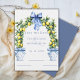 Mark your calendars for a wedding to remember! This elegant Save the Date features lovely accents with vibrant lemons creating a beautiful arch evoking the romance of a sun-kissed garden. Elegant topiaries in exquisite blue ornate vases on each side add a touch of sophistication and European charm. With refined typography enhancing the design, this card sets the tone for a celebration filled with love, elegance, and timeless beauty.