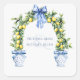 Add a touch of timeless charm to your wedding invitations with this beautifully designed Wedding Sticker. Featuring a lush greenery arch adorned with vibrant lemons, framed by classic pillars and exquisite blue ornate vases, this design perfectly complements your elegant celebration. The sophisticated details and refined aesthetic make it a stunning finishing touch for sealing envelopes, favor packaging, or decor accents. A lovely way to tie your wedding theme together with grace and style!