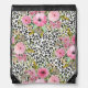 Elegant Leopard Print and Floral Design Drawstring Bag