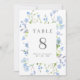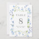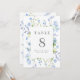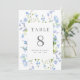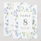 Pretty wedding table numbers with a rectangular frame surrounded by light blue watercolor flowers and greenery. Personalize with your names and wedding date. 5x7 size