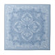 This decorative light blue ceramic tile features an elegant lace look pattern with flourish flowers and butterflies. It's perfect for home decor in boho style.