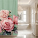 Transform your bathroom into a serene floral escape with this elegant light blush pink shower curtain, featuring soft watercolor roses delicately scattered across the fabric. The gentle sage green background sets a calming tone, while the rose design adds a romantic, vintage-inspired touch.