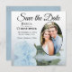 Elegant Light Dusty Blue Rose & Oval Photo Wedding Save The Date
