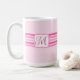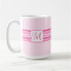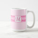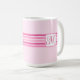 This elegant mug features pink stripes and a customizable initial on front and back.