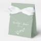 Elegant wedding favour box (tent) with flowers graphics and changeable white text - you can add Bride's and Groom's name and wedding date, printed on light sage green background
